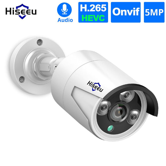 Hiseeu HB615 H.265 5MP - Telecamera IP di sicurezza IP66 impermeabile per esterni con funzionalità video POE ONVIF e P2P - Perfetta per la sorveglianza domestica e aziendale